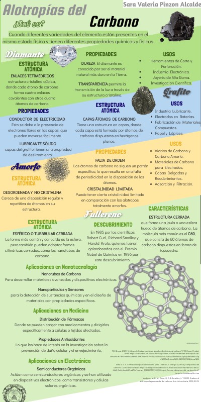 PCC Group. (2022, 16 febrero). ¿Cuáles son las variedades alotrópicas de carbono? PCC Group Product Portal. https://www.products.pcc.eu/es/blog/cuales-son-las-variedades-alotropicas-de-carbono/#:~:text=Este%20fen%C3%B3meno%20se%20conoce%20como,diferentes%20propiedades%20qu%C3%ADmicas%20y%20f%C3%ADsicas%20.