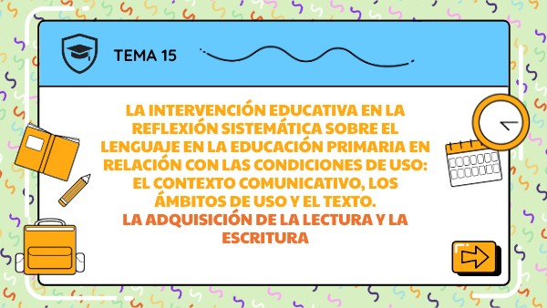 La intervención educativa en la reflexión sistemática sobre el lenguaje en la educación primaria en relación con las condiciones de uso: el contexto comunicativo, los ámbitos de uso y el texto. La adquisición de la lectura y la escritura
