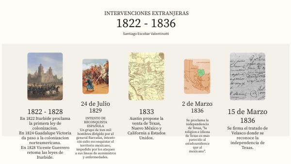 En 1822 Iturbide proclama la primera ley de colonizacion.En 1824 Guadalupe Victoria da paso a la colonizacion norteamericana. En 1828 Vicente Guerrero retoma las leyes de Iturbide.
