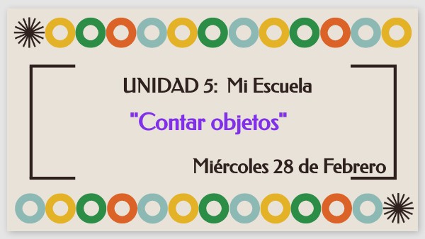 . Pedir que se coloquen en elipse y colocar al centro la colección de los objetos escolares; decir el nombre de cada objeto. Generar emoción en los estudiantes para aumentar su disposición para trabajar.