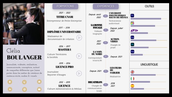 Journaliste, vidéaste, réalisatrice, communicante, conceptrice, autant de casquettes différentes que j'aime porter dans les métier de créateurs de contenus écrits, audios & vidéos.