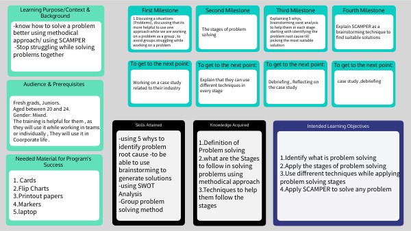 1.Identify what is problem solving 2.Apply the stages of problem solving 3.Use diffrerent techniques while applying problem solving stages 4.Apply SCAMPER to solve any problem