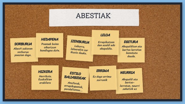 Ahapalditan eta bertso lerrotan banatuta daude.