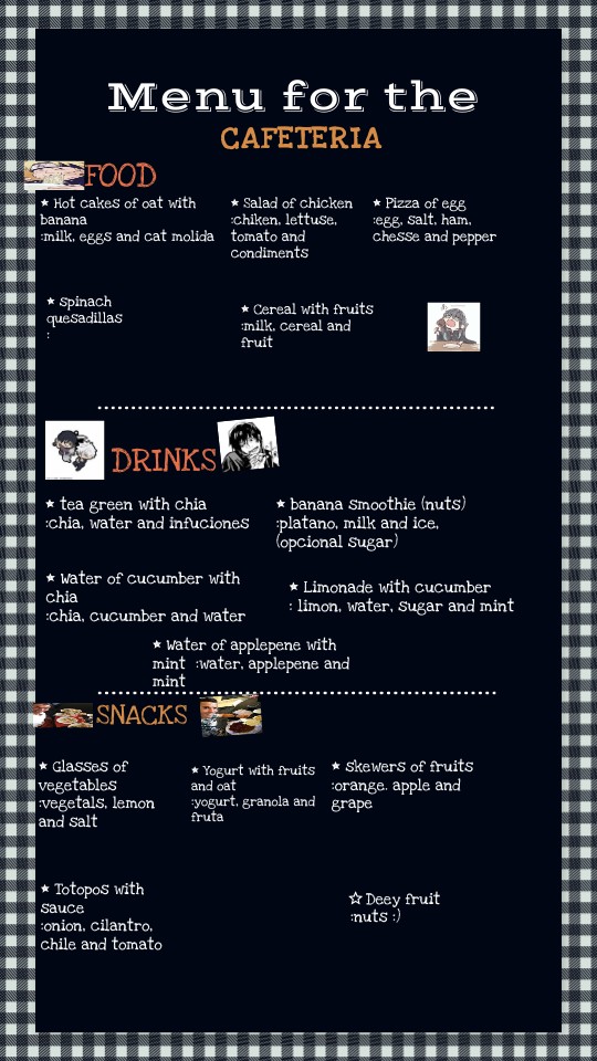 * Yogurt with fruits and oat :yogurt, granola and fruta