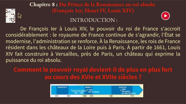 Chapitre 8 : Du Prince de la Renaissance au roi absolu (François 1er, Henri IV, Louis XIV)