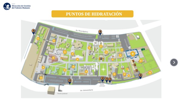 Puedes visualizar los puntos en el campus haciendo clic sobre los círculos amarillos con el signo más: