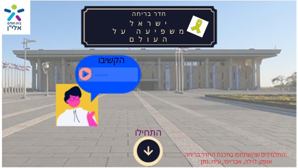 לפניכם תרשים של בניין הכנסת. בתוך החדרים יש חידות, אם תפתרו נכון תקבלו רמזים שבעזרתם תקבלו מפתחות כדי לחלץ את חברי הכנסת .הנעולים