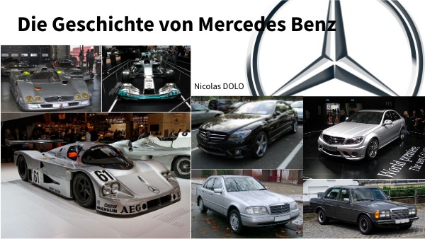 1) Die Schöpfung a) Daimler-Motoren-Gesellschaft b) Mercedes c) Benz d) Gründung und Markteinführung von Mercedes-Benz 2) Unter dem Dritten Reich a) Mercedes-Benz und Nazi b) Mercedes-Benz T80 c) Kriegsgefangene und Zwangsarbeiter in Fabriken 3) Heutzutage
