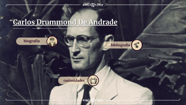 Carlos Drummond de Andrade foi um grande poeta e escritor brasileiro, nascido em Itabira, Minas Gerais, em 1902, e falecido em 1987. Ele é considerado um dos maiores escritores da literatura brasileira do século XX. Conhecido pela sua obra poética marcada por uma linguagem moderna e reflexiva, Drummond de Andrade abordou temas variados,como o quotidiano, o amor, a política e a condição humana, deixando um legado significativo na literatura brasileira.