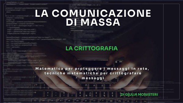 L'introduzione alla crittografia spiega come la matematica sia collegata ai procedimenti linguistici della crittografia, e come la crittografia moderna si basi sull'aritmetica modulare e sull'uso del computer. La crittografia moderna mette da parte bastoni, dischi e macchine come Enigma, e si basa unicamente sull'uso del computer e sull'aritmetica modulare.