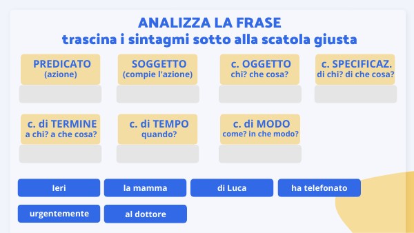 ANALIZZA LA FRASE trascina i sintagmi sotto alla scatola giusta
