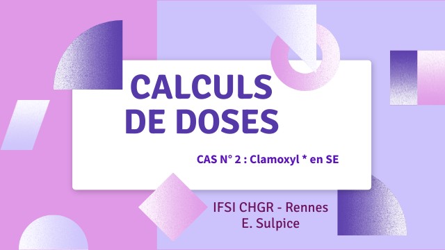 PRESCRIPTION (surlignée) Le médecin prescrit au petit Pierre une antibiothérapie : "Administrer en SE par voie IV du Clamoxyl* à raison de : 500 mg sur une durée de 30 minutes. 3 fois par jour." Le Clamoxyl* se présente sous forme de flacons de 1 gr de poudre à reconstituer avec 20 ml de sérum physiologique.