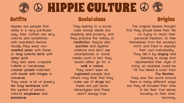 They belong to a social class whose ideals are simplicity and poverty, and they practice the hobby of meditation, they’re also pacifists and against violence and don’t use smartphones or social media much in fact they would rather go for a walk in nature. They aren’t seen as organized people and others may think that they make use of drugs but these are just some stereotypes and these aren’t always true.