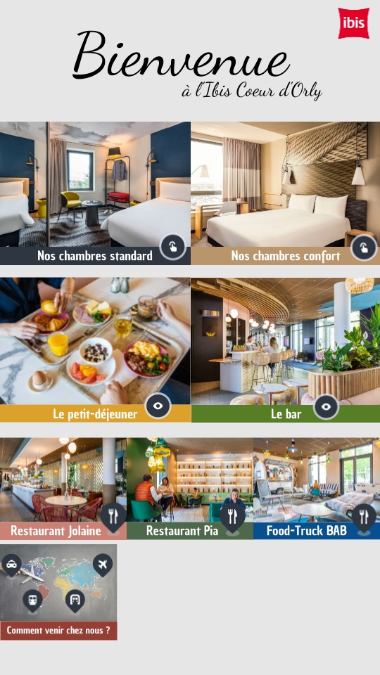 Terminal 4 : 5 minutes à pied jusqu'à l'hôtel. Empruntez la passerelle face à la porte 47d, sur votre droite. Terminal 3 : 15-20 minutes jusqu'à l'hôtel. Rejoignez à pied le terminal 4 adjacent et traversez la passerelle porte 47d, sur votre droite. Terminal 2 : 20 minutes jusqu'à l'hôtel. Rejoignez le terminal 4 à pied ou prennez l'Orly Val du T1 au T4 et traversez la passerelle porte 47d. Terminal 1 : 20 minutes jusqu'à l'hôtel. Prennez l'OrlyVal du T1 au T4 et traversez la passerelle porte 47D. L'OrlyVal circule tous les jours de 6h à 23h35. Les navettes gratuites ADP circulent tous les jours depuis les gares routières de Paris-Orly 1,2 et 3 (arrêt 3) et de Paris Orly 4 (arrêt 1) toutes les 20 minutes.