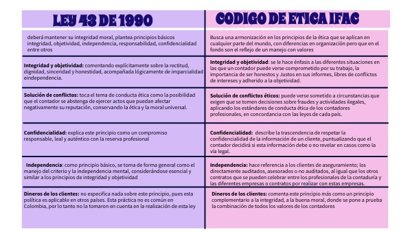 Independencia: hace referencia a los clientes de aseguramiento; los directamente auditados, asesorados o no auditados, al igual que los otros contratos que se pueden celebrar entre los profesionales de la contaduría y las diferentes empresas o contratos por realizar con estas empresas.