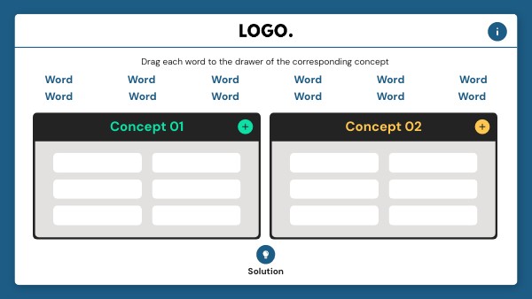 Drag each word to the drawer of the corresponding concept