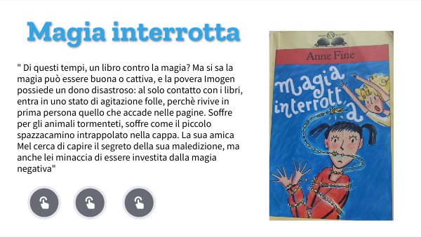 " Di questi tempi, un libro contro la magia? Ma si sa la magia può essere buona o cattiva, e la povera Imogen possiede un dono disastroso: al solo contatto con i libri, entra in uno stato di agitazione folle, perchè rivive in prima persona quello che accade nelle pagine. Soffre per gli animali tormenteti, soffre come il piccolo spazzacamino intrappolato nella cappa. La sua amica Mel cerca di capire il segreto della sua maledizione, ma anche lei minaccia di essere investita dalla magia negativa"