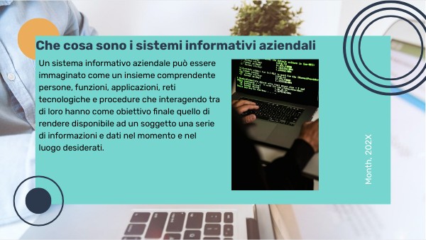 Il sistema informativo aziendale è l'insieme coordinato di persone, procedure e mezzi tecnici (hardware e software) che permette l'elaborazione e la condivisione di informazioni e dati all'interno dell'azienda.