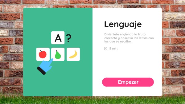 EL JUEGO ES PARA NIÑOS EN EDAD PREESCOLAR. EN ESTE JUEGO DE LENGUAJE TIENEN QUE ELEGIR LA IMAGEN CORRECTA DE LA FRUTA QUE SE LES INDICA, TAMBIÉN PUEDEN OBSERVAR COMO SE ESCRIBE CADA UNA DE LAS FRUTAS CON LAS QUE SE TRABAJA.
