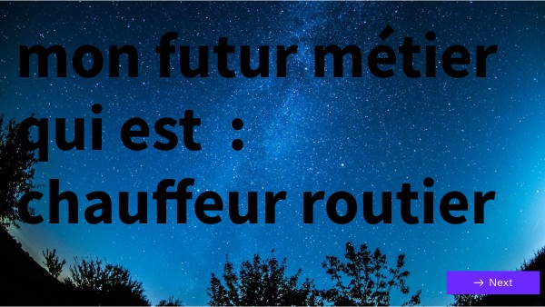 les mots en liaison avec mon futur travail sont:camions ,conduire ,terrassement ,goudron ,mécanique ,chantier ,paysages ,découverte ,autonomie ,voyages.