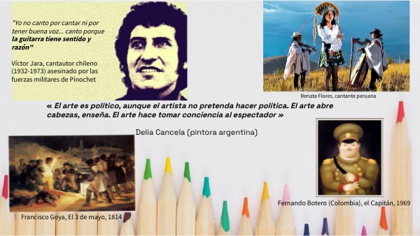 « El arte es político, aunque el artista no pretenda hacer política. El arte abre cabezas, enseña. El arte hace tomar conciencia al espectador » Delia Cancela (pintora argentina)