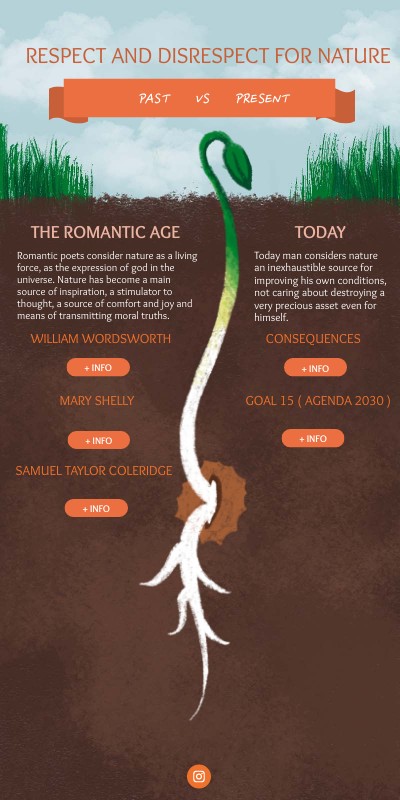 Romantic poets consider nature as a living force, as the expression of god in the universe. Nature has become a main source of inspiration, a stimulator to thought, a source of comfort and joy and means of transmitting moral truths.