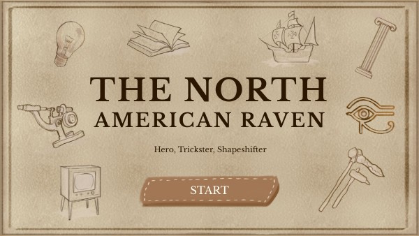 Speaker Notes: hero Raven is a raucous trickster who pulls outrageous pranks to get what he wants. At the same time, he is also a creator and provider who gives humans what they need and teaches them both practical and moral lessons. As a benefactor of humans, he reinforces the notion that humans are responsible for what happens to their world. Importance of human and nature relationship Humans and animals are related and all have spirits Native Americans don’t believe in a single supreme deity although there is a hierarchy of importance Also in North Eastern Asia . Raven always existed, but he was born of a virgin whom he tricked into eating a seed. He also shares the godlike attribute of the creator. Raven created land by dropping grains of sand into the sea, and he caused different types of animals to come into being. He does not take part in the activities of the group, but instead, often prevents those activities to get what he wants. For example, Raven behaves as a child might to get his grandfather to give him the boxes containing the sun and the moon: he cries. In another story, he lies to Petrel to get him to leave his house so that Raven can drink all of his water. (For a discussion of liminality, see Ch. 28, pp. 510–12.) Raven is, like many tricksters, often motivated by his appetites and desires. For example, in the tales recounted in this chapter, Raven brings light and fire to the world for all humans. Although Raven has brought good things to earth, his actions are ultimately the result of his wanting to get something for himself, not for mankind. Shape shifter- child, dirt Transformer- is able to create land masses and rivers. Created rivers by stealing water from Petrel and spitting it out as he flies. Created islands by dropping sand over the ocean as he flies. Raven is one of the most important figures in the belief system of the native peoples of the Northwest Coast. They give him prestigious names like “He-Whose-Voice-Is-Obeyed'' in Haida and “Great Inventor " and""Chief " in Kwakiutl. Raven is also one of the most frequently used motifs in Northwest Coast native artwork.