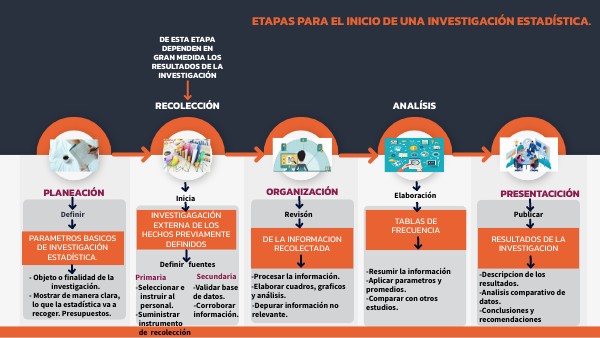 ETAPAS PARA EL INICIO DE UNA INVESTIGACIÓN ESTADÍSTICA.