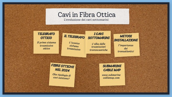 Una fibra ottica è una guida d'onda trasparente realizzata con materiali dielettrici, come vetro o plastica, progettata per trasmettere onde elettromagnetiche nella regione ottica dello spettro, solitamente nell'infrarosso. Oggi esistono due tipologie di cavi sottomarini: i cavi dati, che servono per trasmettere dati da un trasmettitore a un ricevitore ottico e sono generalmente multimodali, rivestiti da materiali ipermeabili e resistenti. Il loro prezzo varia in base alla quantità, oscillando dai 30/40 agli 80/90 mila euro. Inoltre, ci sono i cavi d'energia, utilizzati per trasmettere energia da un trasmettitore a un ricevitore. A seconda del livello di tensione, si distinguono tra cavi a 3 fili (media e bassa tensione) e unipolari (alta tensione). Questi cavi sono principalmente impiegati per le comunicazioni bidirezionali HVDC.