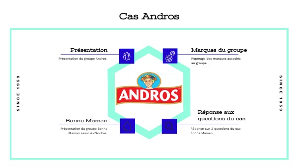 Le groupe andros est une entreprise familiale et multi-locale, Andros est spécialisée dans la transformation des fruits et des laitages. Son siège est situé à Biars-Sur-Cère, elle a été officielement fondé en 1985 mais existe depuis depuis la fin de la 2nd guerre mondial (1959), fondé par Jean Gervoson et Pierre Chapoulart. Le chiffre d'affaire actuel d'Andros est estimé à plus de 2,2 Milliards d'euros, grâce à leurs marques associés, ils sont présents dans plus de 125 pays.