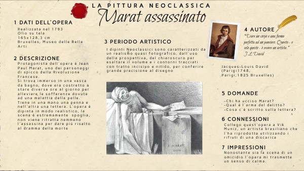 -Chi ha ucciso Marat?-Qual è l'arma del delitto? -Cosa c'è scritto sulla lettera?