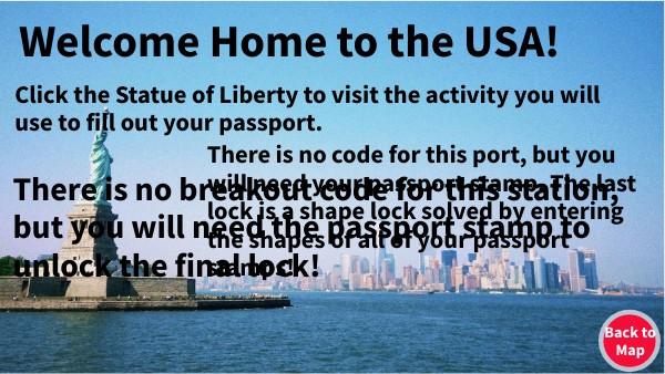 Click the Statue of Liberty to visit the activity you will use to fill out your passport.