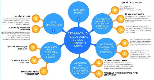 mapa mental sobre el desarrollo psicosocial en los primeros tres años