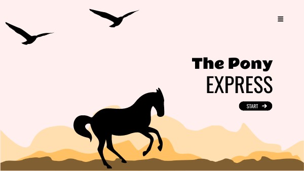Imagine that it is the year 1860. You have moved to California to open a shop. Most of your family stayed back East. Your shop is doing well and now you would like for your family to join you. How do you get news to them? There's no phone, no train, and you can't leave your shop for too long. What do you do?... You could use the Pony Express.