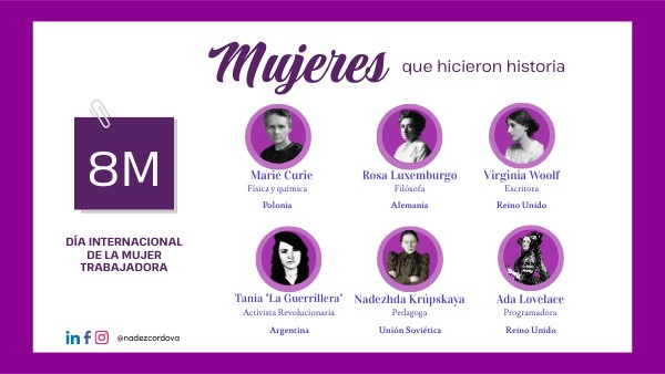 Al conmemorarse el Día Internacional de la Mujer Trabajadora, te presento a mujeres que desde sus diferentes espacios hicieron historia.
