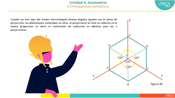 Cuando los tres ejes del triedro trirrectángulo forman ángulos iguales con el plano de proyección, las dimensiones contenidas en ellos, al proyectarse en éste se reducen en la misma proporción; es decir el coeficiente de reducción es idéntico para las 3 proyecciones.