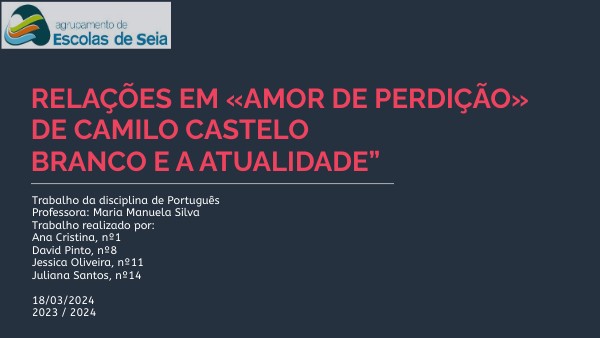 Relações em «Amor de Perdição» de Camilo Castelo Branco e a atualidade”