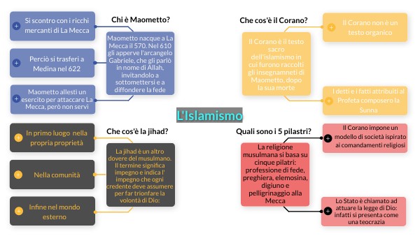 Maometto nacque a La Mecca il 570. Nel 610 gli apperve l'arcangelo Gabriele, che gli parlò in nome di Allah, invitandolo a sottomettersi e a diffondere la fede