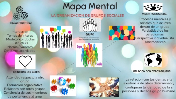 Mapa conceptual del significado de grupo, características, identidad, visión, relaciones entre otros grupos