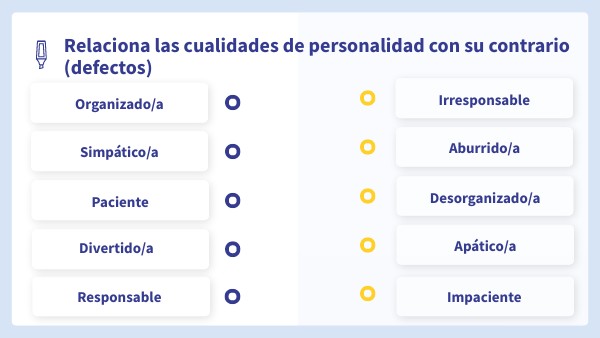 Relaciona las cualidades de personalidad con su contrario (defectos)