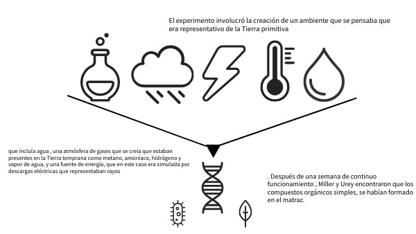 que incluía agua , una atmósfera de gases que se creía que estaban presentes en la Tierra temprana como metano, amoníaco, hidrógeno y vapor de agua, y una fuente de energía, que en este caso era simulada por descargas eléctricas que representaban rayos