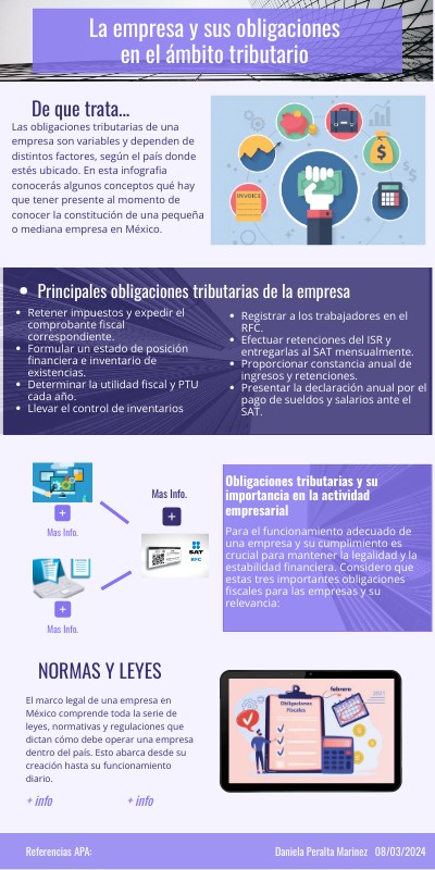 Las obligaciones tributarias de una empresa son variables y dependen de distintos factores, según el país donde estés ubicado. En esta infografia conocerás algunos conceptos qué hay que tener presente al momento de conocer la constitución de una pequeña o mediana empresa en México.