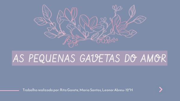 - GODINHO, Flávio, FRANCISCO, João, VIEIRA, Rodrigo. (2021). As pequenas gavetas do amor [em linha]. Prezi. Acesso em: 11/03/2024. URL: https://prezi.com/i/47nrudwifcq1/as-pequenas-gavetas-de-amor/