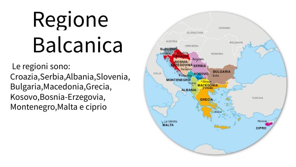 Le regioni sono: Croazia,Serbia,Albania,Slovenia, Bulgaria,Macedonia,Grecia, Kosovo,Bosnia-Erzegovia, Montenegro,Malta e ciprio