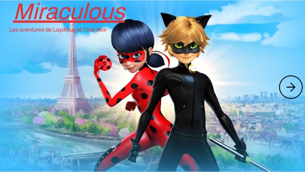 Miraculous, les aventures de Ladybug et Chat Noir est un dessin animé, imaginé par Thomas Astruc, diffusé en France sur TF1 Disney Channel. Cinq saisons ont déjà été diffusées avec environ 26 épisodes par saison et 3 hors-saison. Certains personnages du dessin animé sont des guest-star comme Josiane Balasko et le patineur Philippe Candeloro. Le générique de la chanson française est chanté par Lou et Lenni-Kim. Lila Rossie et Chloé Bourgeois sont jalouses de Marinette car elle est amoureuse d'Adrien. Le Papillon akumatise les gens qui ont des émotions négatives.