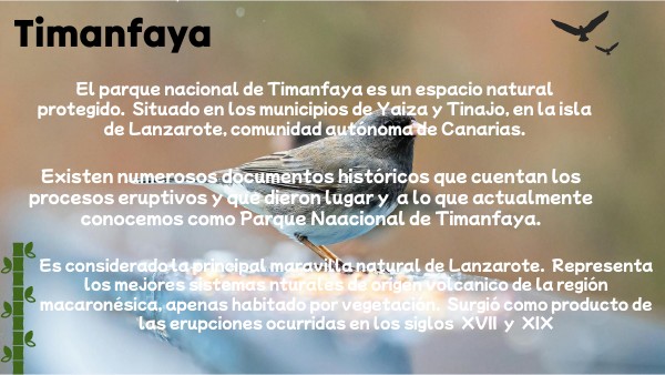 Existen numerosos documentos históricos que cuentan los procesos eruptivos y que dieron lugar y a lo que actualmente conocemos como Parque Naacional de Timanfaya.