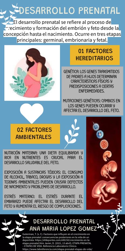 Guterman, T. (s. f.). Factores que influyen en el crecimiento en la etapa prenatal: consecuencias posteriores en la vida de un deportista. https://efdeportes.com/efd150/crecimiento-en-la-etapa-prenatal.htm Javier, D. (2021, 13 abril). ETAPA PRENATAL – ETAPAS DE VIDA. Referencia Laboratorio Clínico. https://www.labreferencia.com/etapa-prenatal-etapas-de-vida/