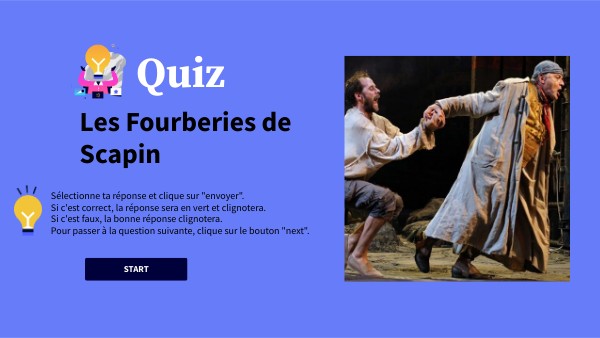 Sélectionne ta réponse et clique sur "envoyer". Si c'est correct, la réponse sera en vert et clignotera. Si c'est faux, la bonne réponse clignotera. Pour passer à la question suivante, clique sur le bouton "next".