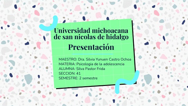 MAESTRO: Dra. Silvia Yunuen Castro OchoaMATERIA: Psicologia de la adolescenciaALUMNA: Silva Pastor Frida SECCION: 41 SEMESTRE: 2 semestre
