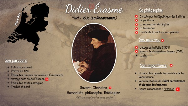 Né à Rotterdam en 1466~Mort à Bâle en 1536 (Suisse)